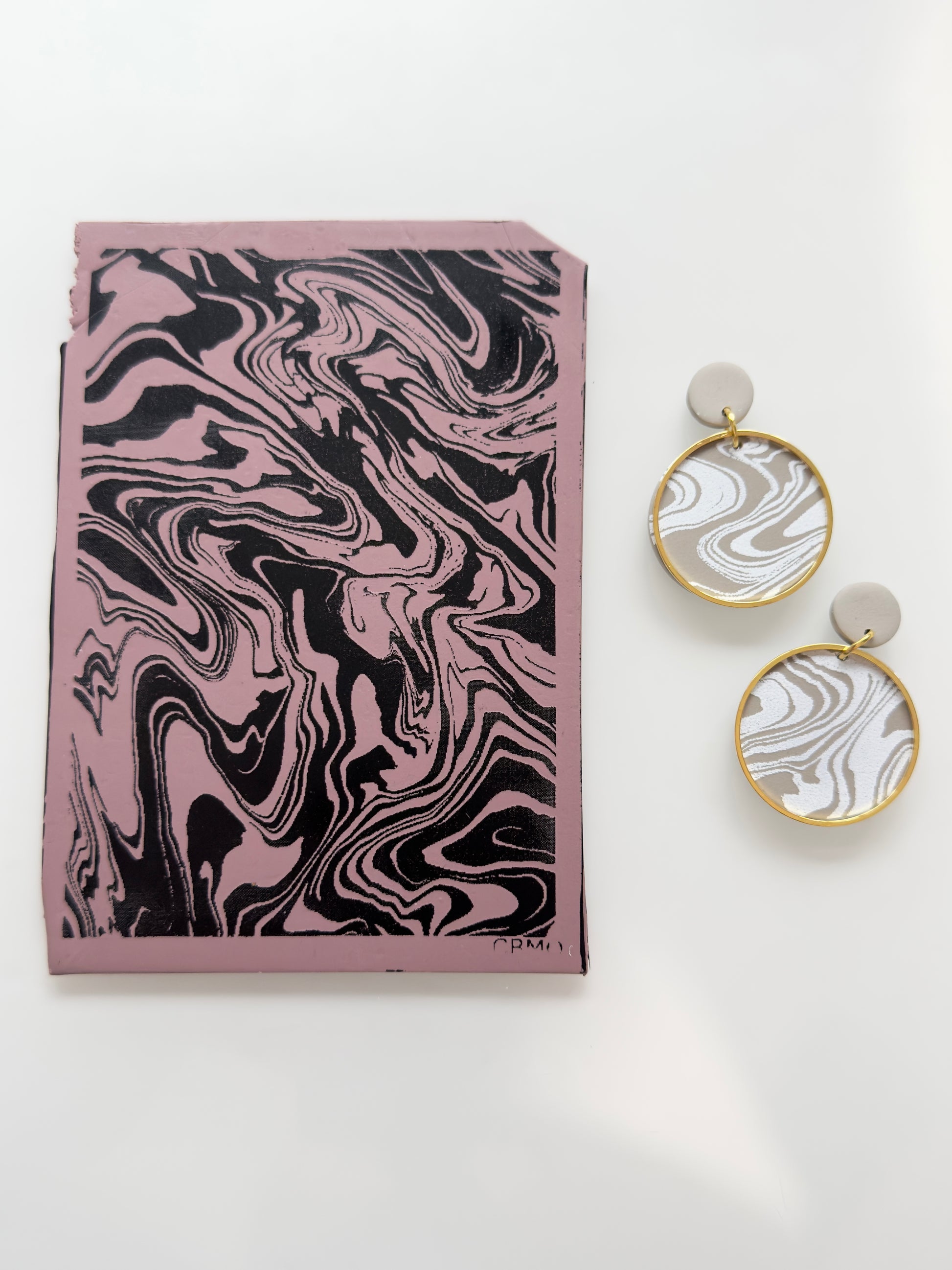 This silk screen can be used on polymer clay with heavy body acrylic paint, mica powders, or fine chalk pastels.